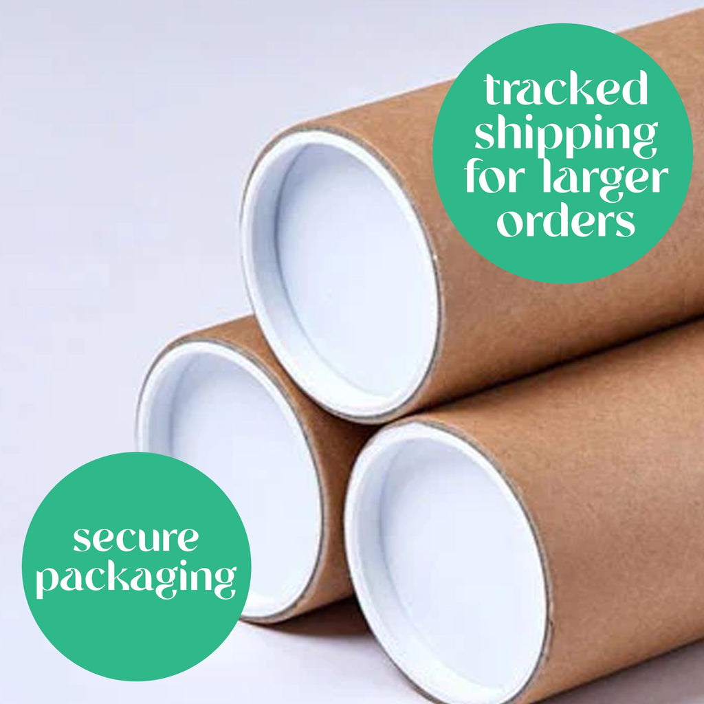 Packaged with the greatest of care and shipped rolled in brown paper and slotted inside a sturdy mailing tube for ultimate protection.